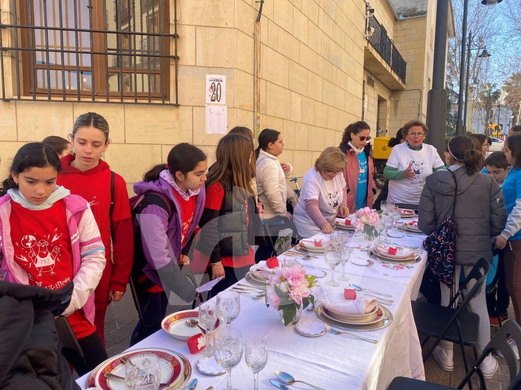 La actividad se desarrolla en distintos puntos de la ciudad como la Plaza Nueva, el Paseo del Coso, la Plaza de Archidona o el Llanete de San Agustín. A su finalización, los escolares participan en la lectura de un manifiesto por la Paz y en una coreografía dirigida por Araceli Hidalgo.