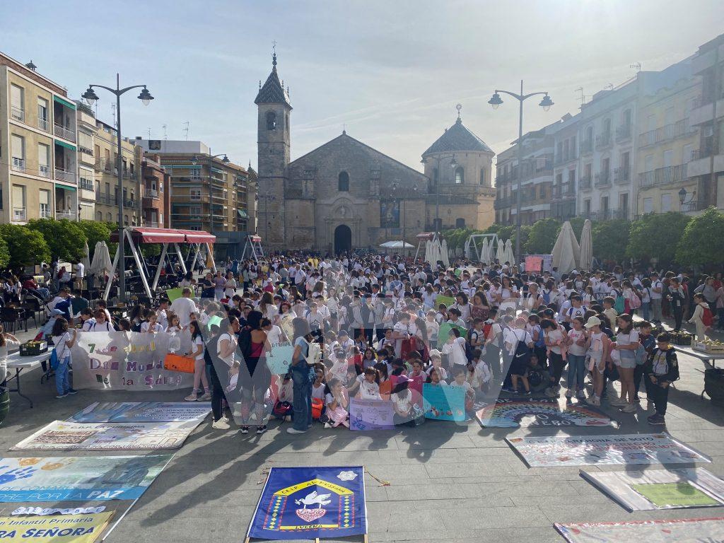 Bajo el lema “Mi salud, mi derecho. MI salud, mi responsabilidad”, la Plaza Nueva ha congregado a alrededor de 800 escolares que han participado en la I Marcha por la Salud de Lucena, actividad que cierra los actos de la Semana de la Salud.