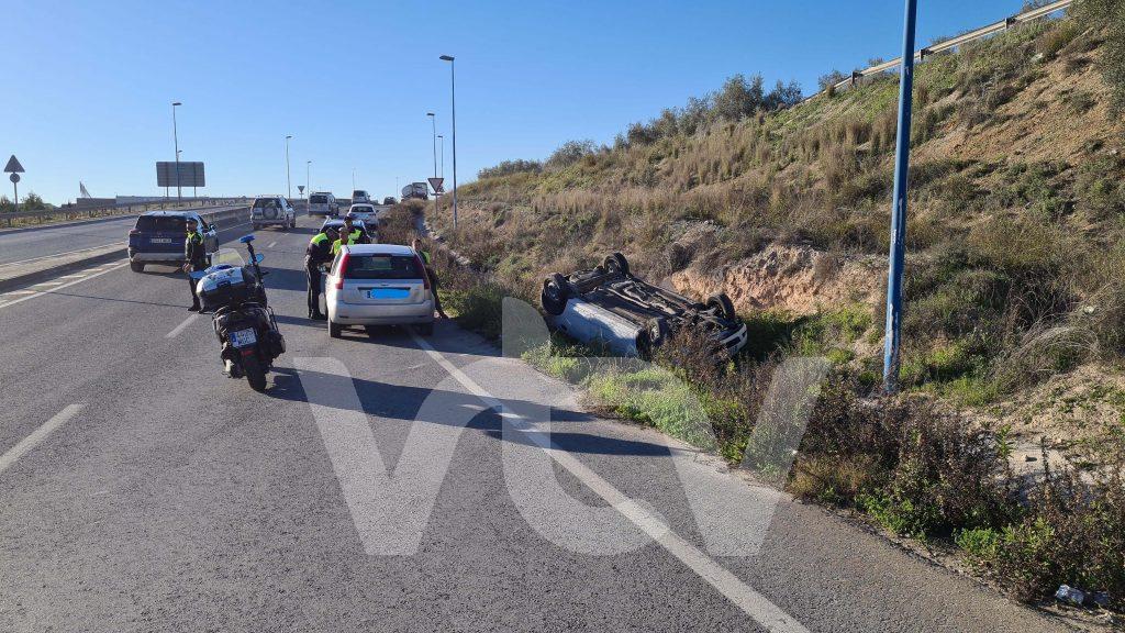 El choque trasero entre dos vehículos provocó el vuelco del primero de ellos, un Opel Corsa conducido por una joven natural de Aguilar de la Frontera. Afortunadamente la mujer resultó ilesa aunque fue trasladada hasta el Hospital Infanta Margarita de Cabra para comprobar posibles daños. Al lugar de los hechos acudieron efectivos de la Policía Local y una ambulancia sanitaria.