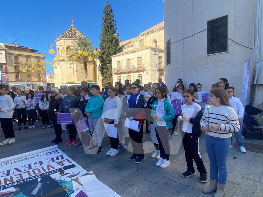 El Ayuntamiento de Lucena junto con la participación de las asociaciones de mujeres de la ciudad y escolares de los distintos centros educativos lucentinos intervenían en el acto institucional en torno al 25N, Día en Contra de la Violencia de Género.