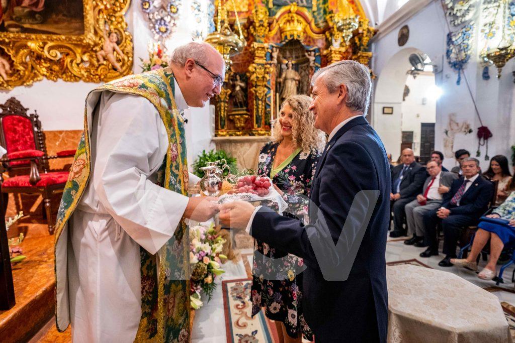 Al finalizar la eucaristía, el oferente, acompañado por su mujer, accedió al Camerín de la Virgen para depositar la bandeja de ofrendas a los pies de Nuestra Señora de Araceli.