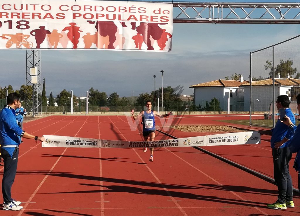Superioridad abismal e irrebatible del atleta lucentino del Club Trotasierra, Antonio Montero Parejo en la vigésima edición de la Carrera Popular Ciudad de Lucena. El corredor local, en su tercer triunfo engarzado, galopó imparable sobre un recorrido de diez kilómetros e invirtió un tiempo de 32 minutos y 27 segundos aventajando en casi 2 minutos al segundo clasificado, el marroquí Bouchaib Nasr. La tercera posición del cajón de ganadores la ocupó Cristóbal García Guillén, otro lucentino que confirmó el dominio exclusivo del Club Trotasierra en esta carrera.