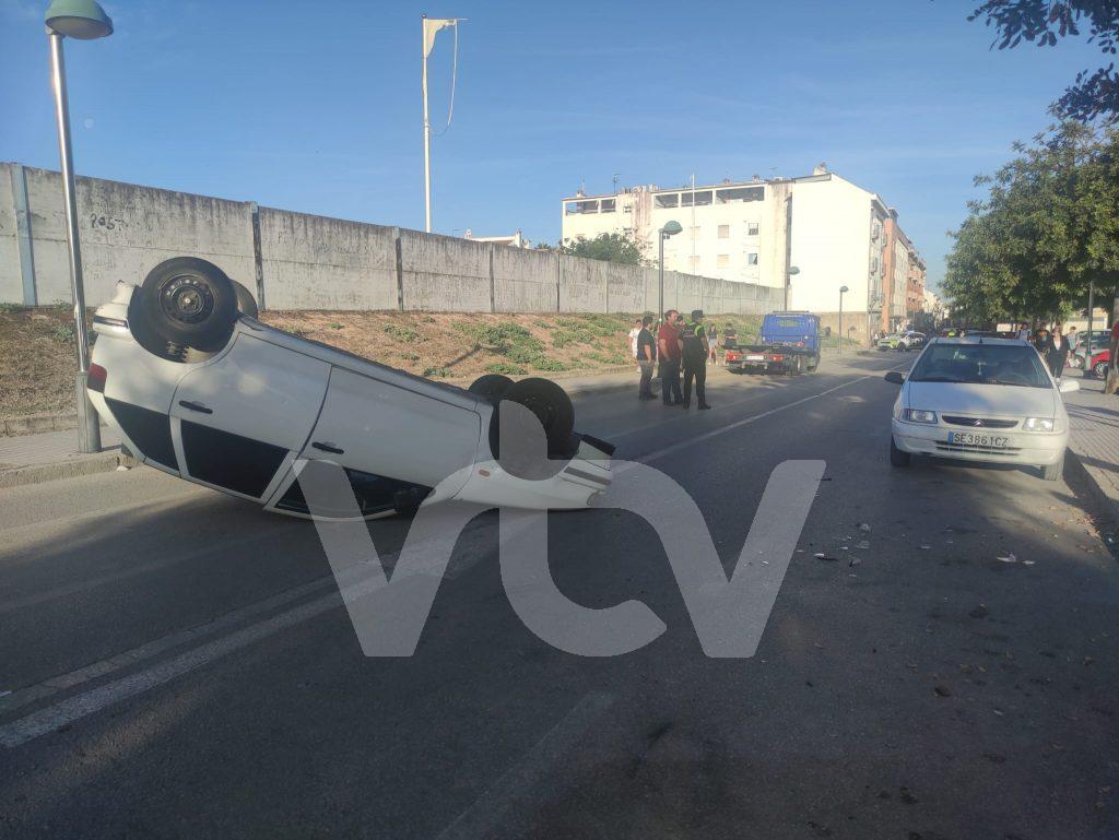 A primera hora de esta mañana se ha registrado un accidente de circulación en la calle Montemayor. Un vehículo ha colisionado con una furgoneta del servicio de Correos que se encontraba aparcada. Como consecuencia del choque el vehículo ha volcado completamente en mitad de la calzada.