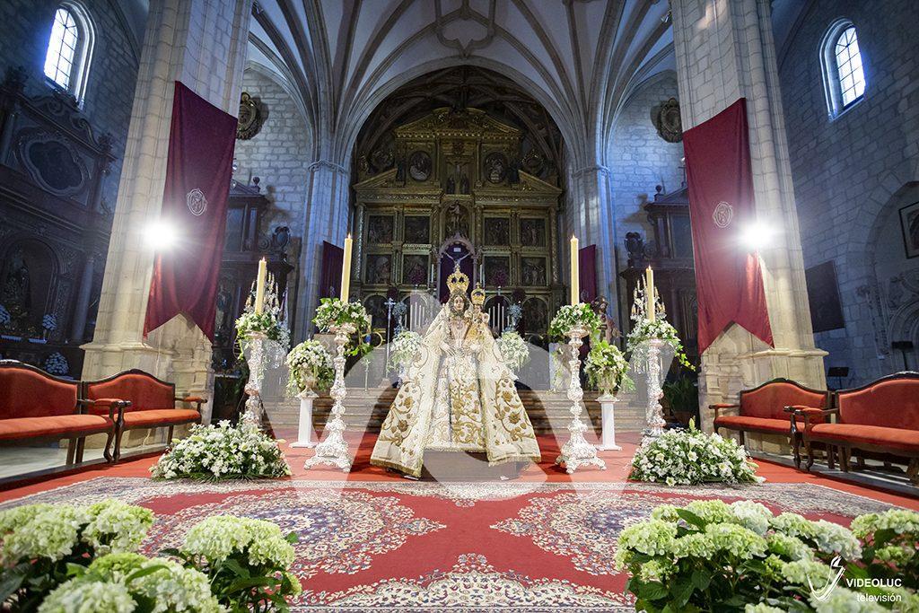 “Ni el mismísimo Enrico Dante, el mejor y más admirado maestro de ceremonias del Vaticano en el último siglo, hubiera sido capaz de desplegar tan ajustado programa de lámparas, flores y orfrebrería para resaltar la imponente figura de la Reina de los Cielos. Desde la equilibrada delimitación de los espacios, para que nada se pierda de vista en estas anchas naves de San Mateo, hasta el cuidado exquisito de los detalles, como la urna rica bajo el dosel o los ramos de flores de plata que real a real pagaron los trabajadores del campo hace más de dos siglos para que su brillo no se apagara nunca en su presencia. Si en el resto de fiestas la devoción se exterioriza de forma colectiva, en el besamanos, ésta se individualiza hasta el punto de lograr con la Virgen esa intimidad todo el año esperada”