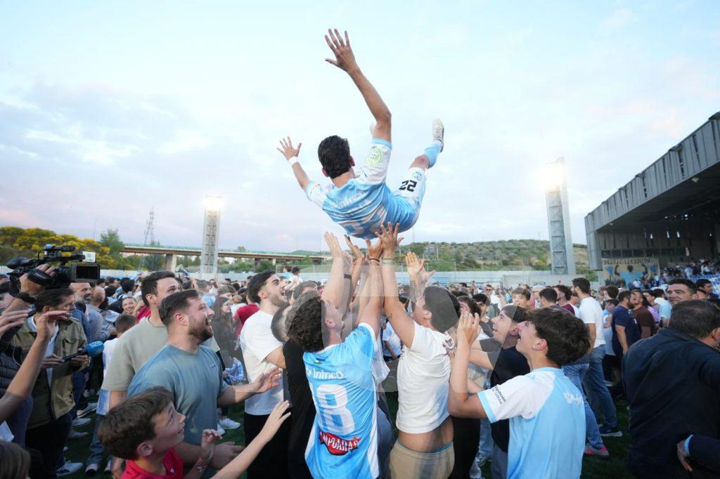 El Ciudad de Lucena ha ganado la liga, si, la ha ganado y yo sin creérmelo todavía después de haber abrazado, llorado, sentido y gritado cada uno de los goles del equipo celeste que es ya parte de mi vida y de mis recuerdos. El Ciudad ha sido un ciclón futbolístico en esta tercera ref grupo décimo, ha jugado, ha luchado, ha defendido y lo más importante, ha creído en lo que podía conseguir y ha conseguido. Todo el estadio lleno de una afición que debe seguir respondiendo como lo ha hecho hoy y en los últimos partidos porque así se construyen los sueños de llegar a ese lugar que te mereces porque lo has soñado. El sacrificio de los dioses ha sido el Tomares, un equipo que cae bien, de los que nadie quiere ver tan abajo y que no ha presentado ninguna batalla. Las 7 de la tarde, la hora del fútbol, ya no había nervios, sólo impaciencia para que llegara ese momento de poder saltar al campo y celebrarlo con tantos deportistas que ya más que personas con las que interactúas en ruedas de prensa, se han convertido en amigos de la información deportiva. Rafa Gálvez hizo el 1 a 0 de penalti sin dudas y sin remordimientos, Manolo Ortiz remató una asistencia de Manu Molina para poner el 2 a 0 en el 27, hizo lo propio Manu Molina en el 34 con el 3 a 0, se unía a la fiesta Canty con un golazo de ensueño y remataba la faena Joseliyo con el 5 a 0 en el minuto 68. Los cinco jinetes que han cabalgado hoy a lomos de un caballo ganador para ser campeones de liga 2025/2026, sin dudas y sin ningún tipo de equilibrismo, sólo con trabajo, trabajo y más trabajo.
