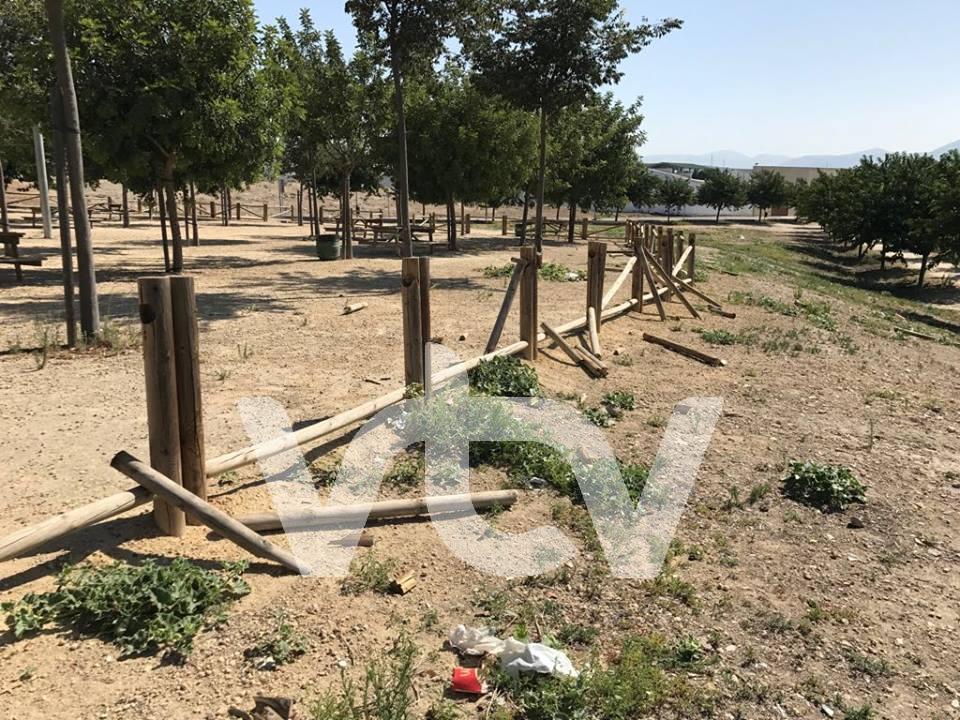 Unos vándalos han causado importantes destrozos en el merendero que se ubica justo en frente de la antigua Estación de Ferrocarril de Lucena. Los daños se produjeron en la madrugada del martes al miércoles, arrancando numerosos barrotes de madera y dejándoles allí tirados.