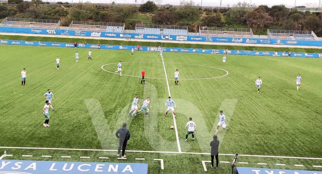 El derbi provincial no ofreció un fútbol lucido sobre el tapete verde del Ciudad de Lucena y menos aún, en una primera parte trabada donde sólo hubo una ocasión para los locales con un disparo alto de Dieguito.