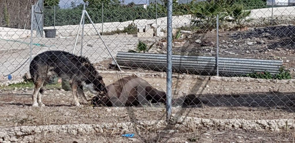 La portavoz municipal de Cs Lucena, Purificación Joyera informa de que “hemos podido comprobar como en esta parcela se encontraba hasta el martes por la mañana el cuerpo sin vida de un caballo que estaba siendo devorado por los perros de la misma parcela ”