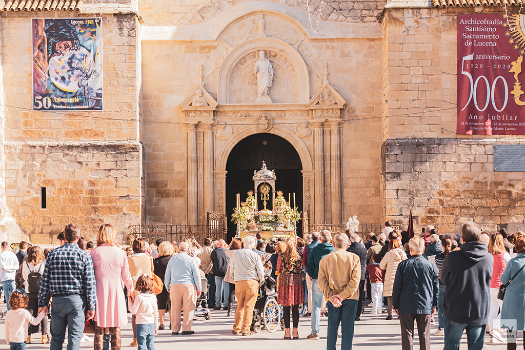 En la mañana de este soleado domingo de noviembre la Hermandad Sacramental de Lucena celebraba su procesión extraordinaria con motivo del V Centenario de la fundación de la corporación en Lucena. La custodia atravesaba la remozada portada de la Mayor de San Mateo de Lucena con la luz potente del mediodía acompañado de un multitudinario cortejo donde no faltaron las corporaciones pasionistas y de gloria lucentinas, la representación de adoración nocturna así como el numerosísimo cortejo de niños que harán el próximo año su primera comunión. Una bonita y soleada mañana en un corto pero emotivo recorrido jalonado de esas luces que pronto nos anunciará que el Verbo encarnado nos vendrá a traer la luz. Una bonita jornada matinal que le sienta muy bien a la procesión sacramental del Santísimo Sacramento.