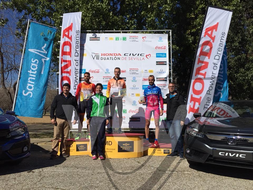 Rocío Espada, con un tiempo de 1 hora, 3 minutos y 2 segundos, y Cristóbal García, con un crono de 54 minutos y 9 segundos, se impusieron en sus respectivas categorías absolutas del VIII Honda Civic Duatlón Ciudad de Sevilla, en el que 700 deportistas agotaron los dorsales dispuestos por la organización.