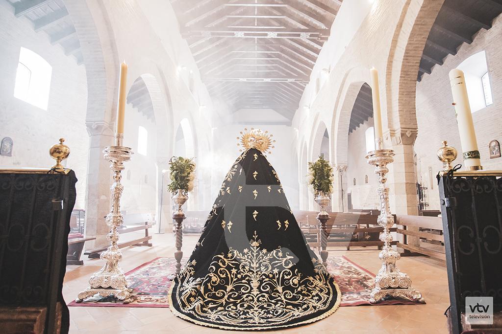 Pero tu honda pena se cubre de ofrenda de oro y amor renovada y tras tu negro manto, de tristeza infinita vendrá la aurora de vida y la gloria de la resurrección que cada madrugada de domingo cuando Tú tornas a Santiago las lágrimas ya desaparecen y se dibuja en tu moreno rostro una ténue sonrisa, todo en Andalucía es sinónimo de resurrección.