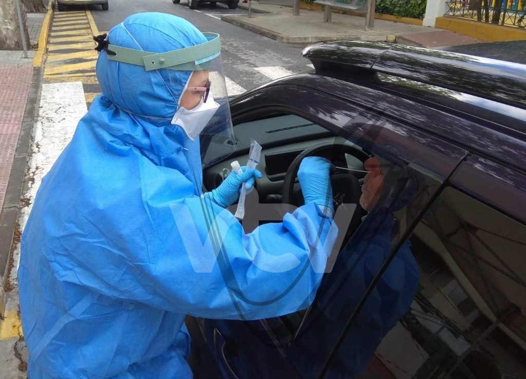 Sin bajarse del vehículo, a través de las ventanillas, un profesional sanitario se acerca con todas las medidas de seguridad y equipos de protección individual necesarios para realizar la prueba, tras la cual se toman los datos del paciente sospechoso que ya puede regresar a retomar su cuarentena domiciliaria preventiva a la espera de la confirmación o no de un posible contagio.