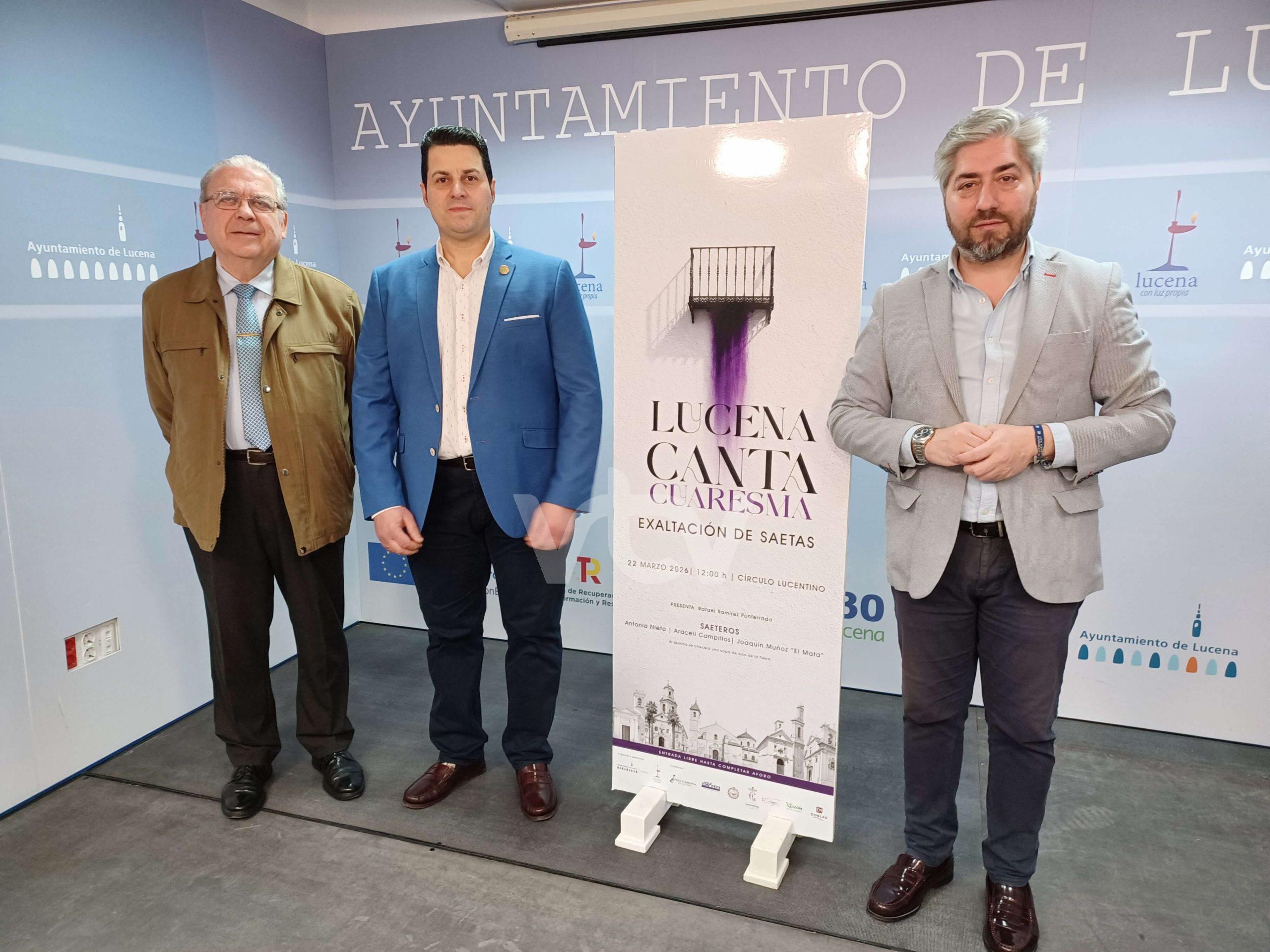 El concejal de Turismo, Francisco Barbancho, ha destacado la relevancia de esta iniciativa dentro del calendario cuaresmal, poniendo en valor la colaboración de la Peña El Santero y la Peña Flamenca de Lucena, representados por su presidente Eduardo García y su vicepresidente Antonio Rivas, respectivamente.