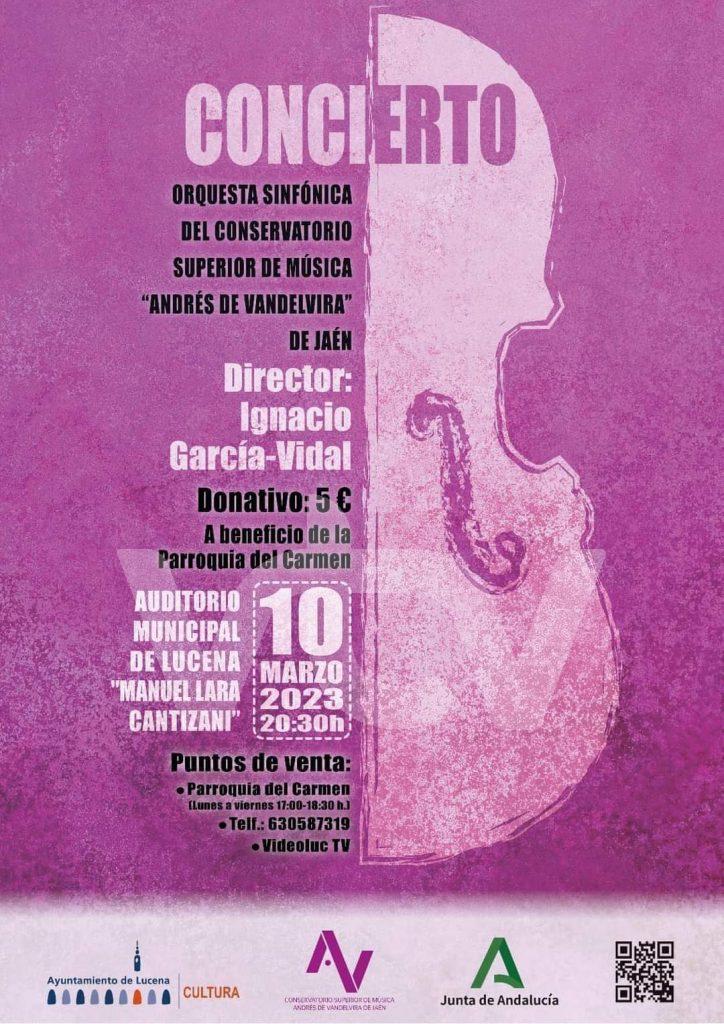 La Concejalía de Cultura del Ayuntamiento de Lucena ha organizado para el próximo viernes 10 de marzo, a beneficio de la Asociación de Vecinos “Huertas del Carmen”, un concierto ofrecido por la Orquesta Sinfónica del Conservatorio Superior de Música “Andrés Vandelvira” de Jaén, dirigido por Ignacio García-Vidal, que rinde homenaje al 150 aniversario del nacimiento del compositor, pianista y director de orquesta Sergei Rachmaninov.