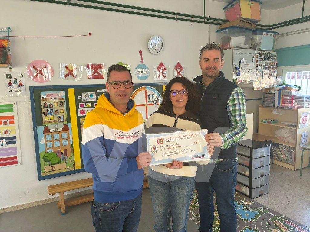 El presidente del Automóvil club Sierra de Aras, Antonio Gómez, ha hecho entrega de un donativo de 1200 euros al alua TEA del Colegio de Nuestra Señora del Valle para el manteniento de las terapias que necesitan los niños que actualmente están utilizando esta opción dentro del colegio.