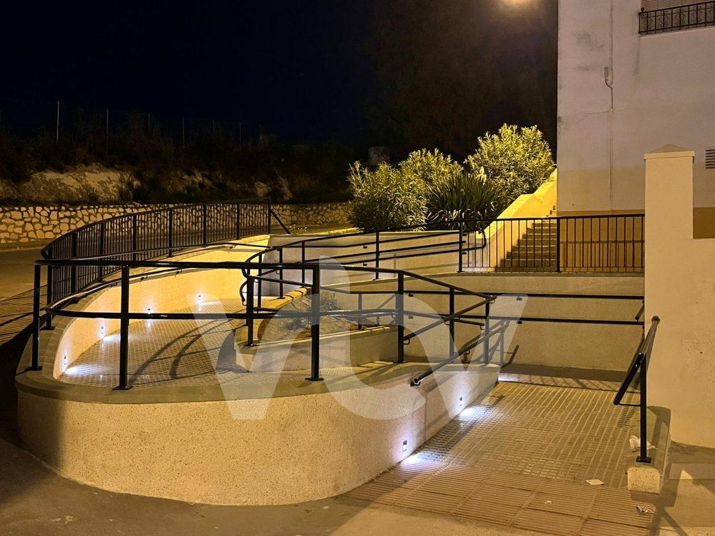 El proyecto técnico incluía para esta zona, además del desarrollo de la rampa de acceso en sí, la colocación de una doble baranda de acero y balizas luminosas. La inversión por parte municipal ha superado ligeramente los 38.000 euros.