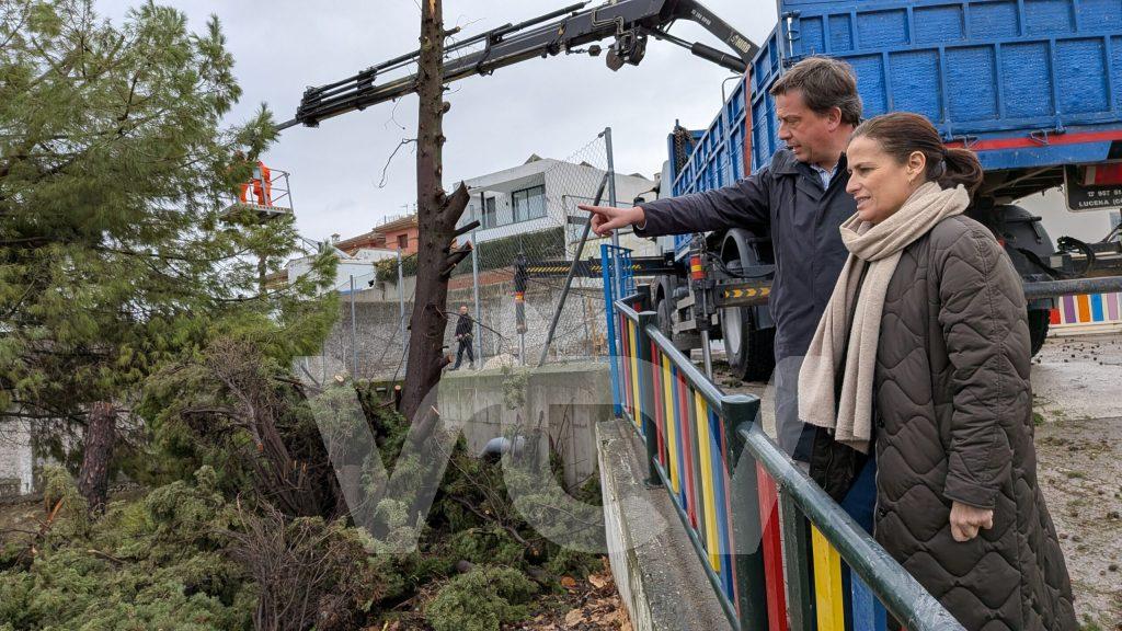 El primer edil lucentino, indicaba que se han presentado un total de ocho actuaciones como la retirada de árboles dañados, trabajos de limpieza de barros y piedras, reposición de biondas, goteras y roturas de tejados en edificios municipales, limpieza de barros por inundación las instalaciones de la piscina de Jauja y retirada de piedras a la entrada de esta aldea lucentina, así como la reparación de mobiliario urbano en parques infantiles y colegios junto con la limpieza de cauces públicos que discurren por el casco urbano.