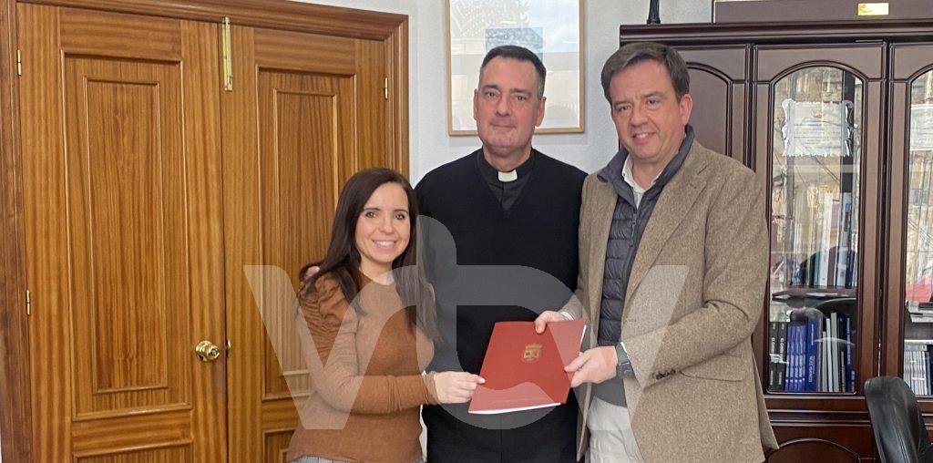 El alcalde de Lucena, Aurelio Fernández y el párroco de la Sagrada Familia, Fernando Martín, firmaban el convenio de colaboración