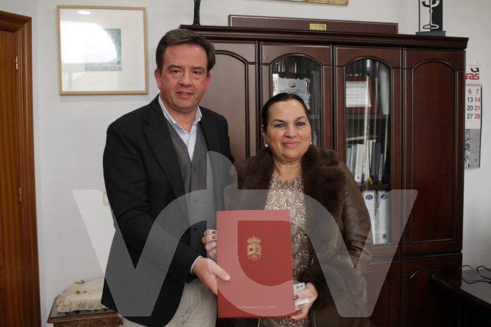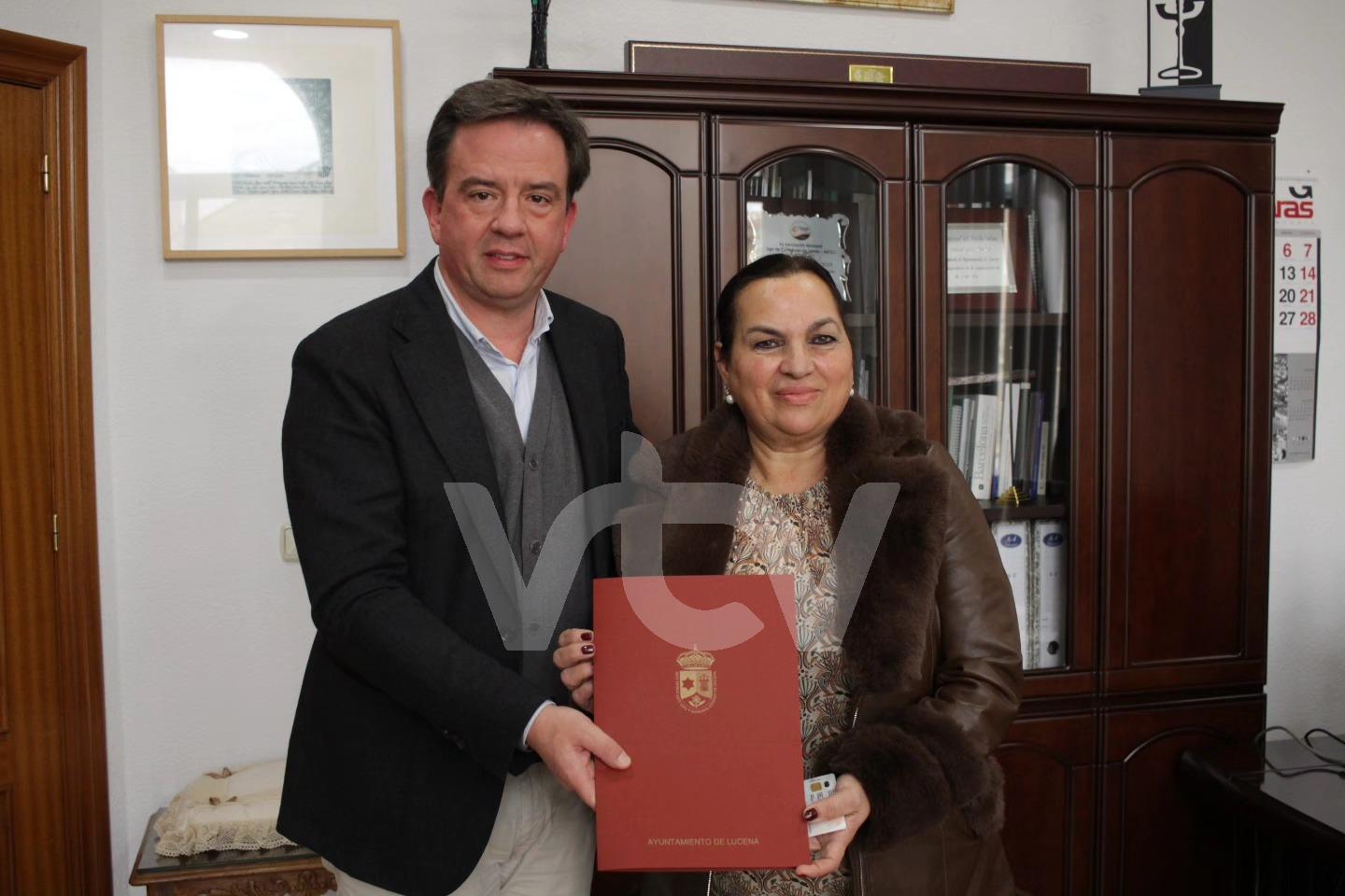 El alcalde de Lucena, Aurelio Fernández, y la presidenta de la Asociación Mujeres Virtuosas, Isabel Maldonado, han firmado un convenio de colaboración por el que el consistorio aporta 2.000 euros para que el colectivo siga con su labor social de ayuda a las personas necesitadas.
