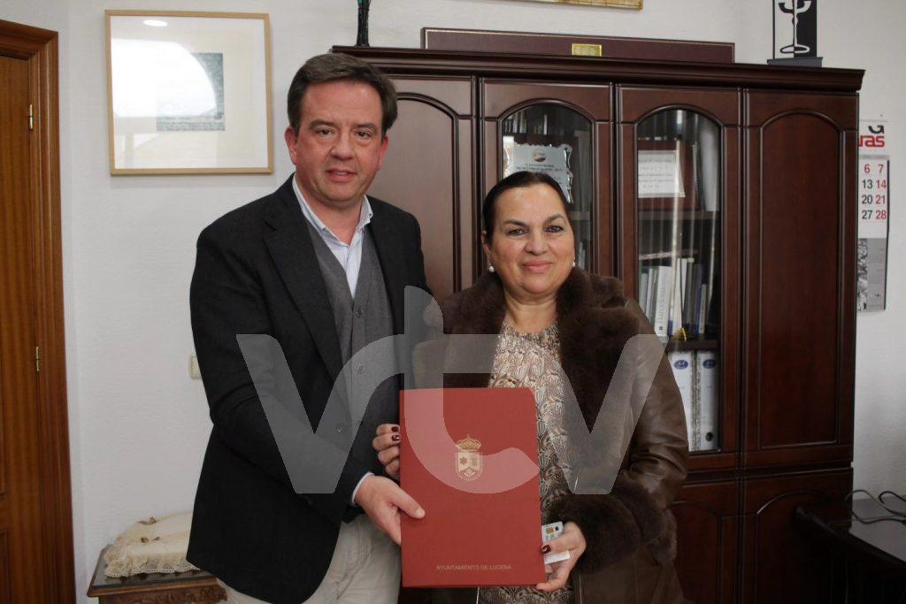 El alcalde de Lucena, Aurelio Fernández, y la presidenta de la Asociación Mujeres Virtuosas, Isabel Maldonado, han firmado un convenio de colaboración por el que el consistorio aporta 2.000 euros para que el colectivo siga con su labor social de ayuda a las personas necesitadas.