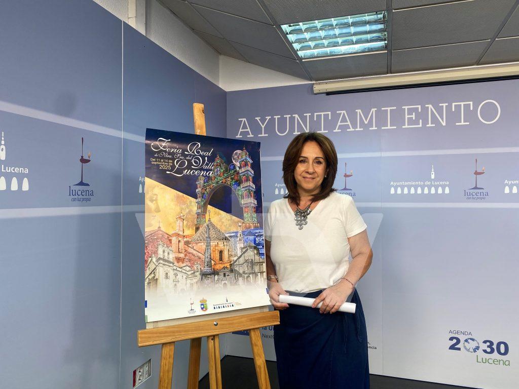 La concejal delegada de Fiestas del Ayuntamiento de Lucena, Araceli Rodríguez, presentaba el cartel que anunciará la Feria Real en Honor a Nuestra Señora del Valle.