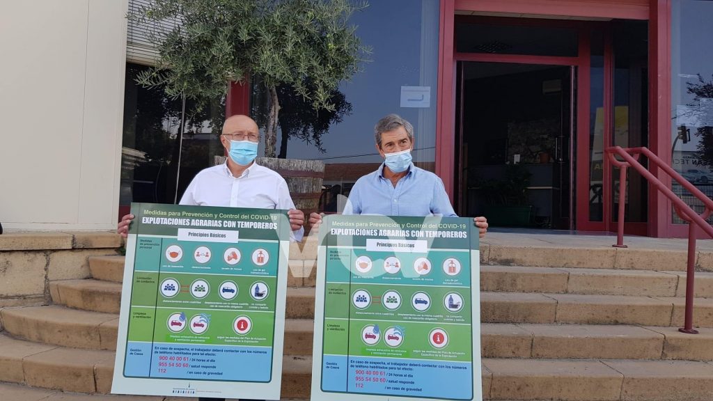 El concejal delegado de Agricultura, Lucas Gómez y el Presidente de la Cooperativa Olivarera de Lucena, Paco Mora, presentaban las Medidas para la Prevención y el Control del Covid 19 para las explotaciones agrarias con temporeros. Según Gómez, estas medidas van destinadas a las cuadrillas de trabajadores ante el inicio, esta semana, de la campaña de recogida de aceituna de verdeo que se prolongará hasta finales del mes de octubre.