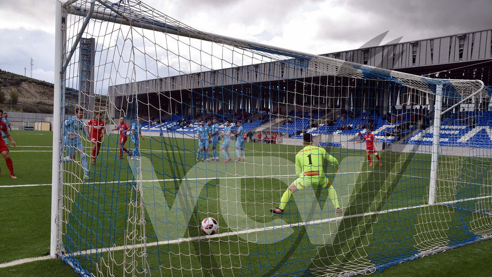 Una internada por la banda izquierda del conjunto que adiestra Pepe Masegosa acaba con un centro al área de Juan Gómez que remata en la boca de gol el delantero visitante Javi Casares.