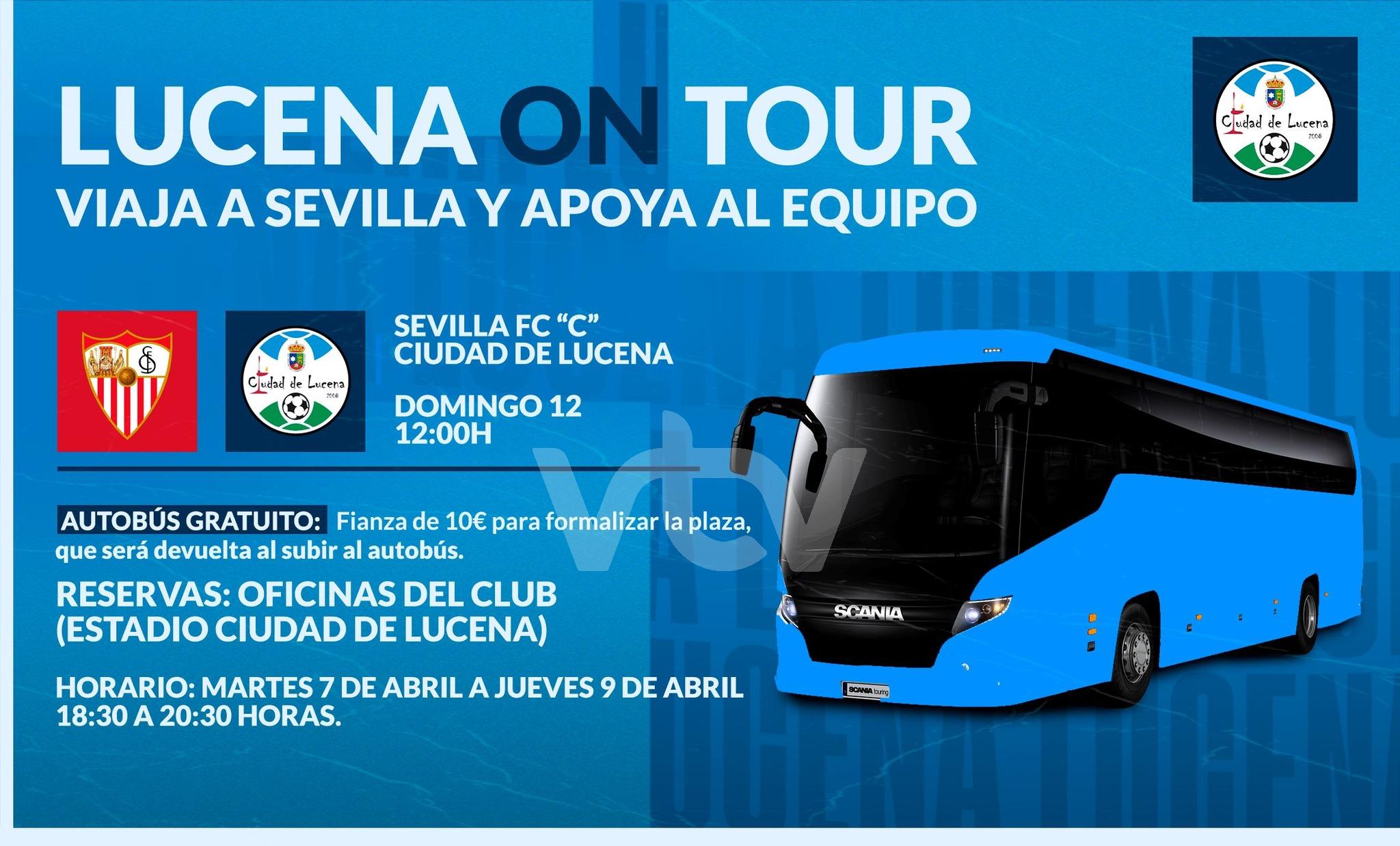 Se entregará una fianza de 10 euros para reserva de plaza y se devolverá antes de subir al autobús el próximo domingo. Con esta iniciativa se pretende llevar el máximo número de aficionados posibles a Sevilla para apoyar al equipo en otro partido crucial ante un rival que ya lo puso muy difícil en el estadio municipal Ciudad de Lucena.