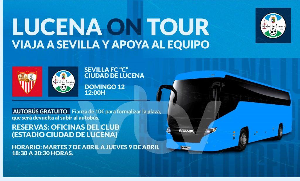 Se entregará una fianza de 10 euros para reserva de plaza y se devolverá antes de subir al autobús el próximo domingo. Con esta iniciativa se pretende llevar el máximo número de aficionados posibles a Sevilla para apoyar al equipo en otro partido crucial ante un rival que ya lo puso muy difícil en el estadio municipal Ciudad de Lucena.