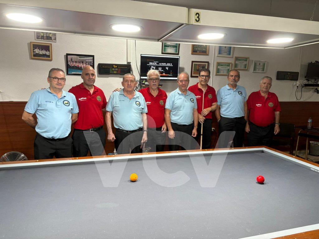 Partido muy disputado entre ambos conjuntos con estos resultados. Rafael Reyes perdió 9 a12 carambolas, Antonio José Martín ganó 21 a17, Francisco Hurtado perdió 9 a 17 y Juan Romero ganó 19 a 8 carambolas.