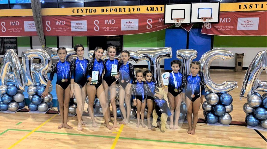 Nuestras representantes en la capital hispalense realizaron un notable campeonato al conseguir un total de 27 medallas (7 oros, 12 platas y 8 bronces), además de varios trofeos de la clasificación general. Este fue el medallero del Club Lucentino de Gimnasia por categorías;