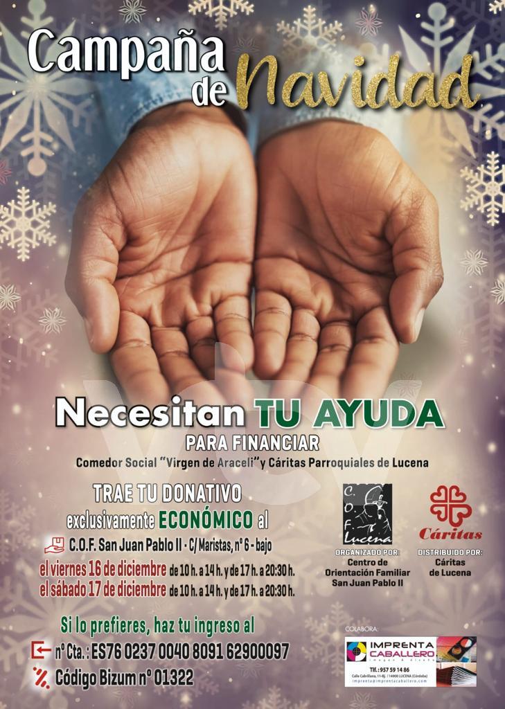 Esta Campaña Solidaria culminará con la apertura del Centro de Orientación “San Juan Pablo II” situado en la calle Maristas N.º 6 Bajo de Lucena los días 16 y 17 de diciembre de 10:00 h a 14:00 h y de 17:00 h a 21:00 h para recoger los DONATIVOS de todas las personas que quieran colaborar.