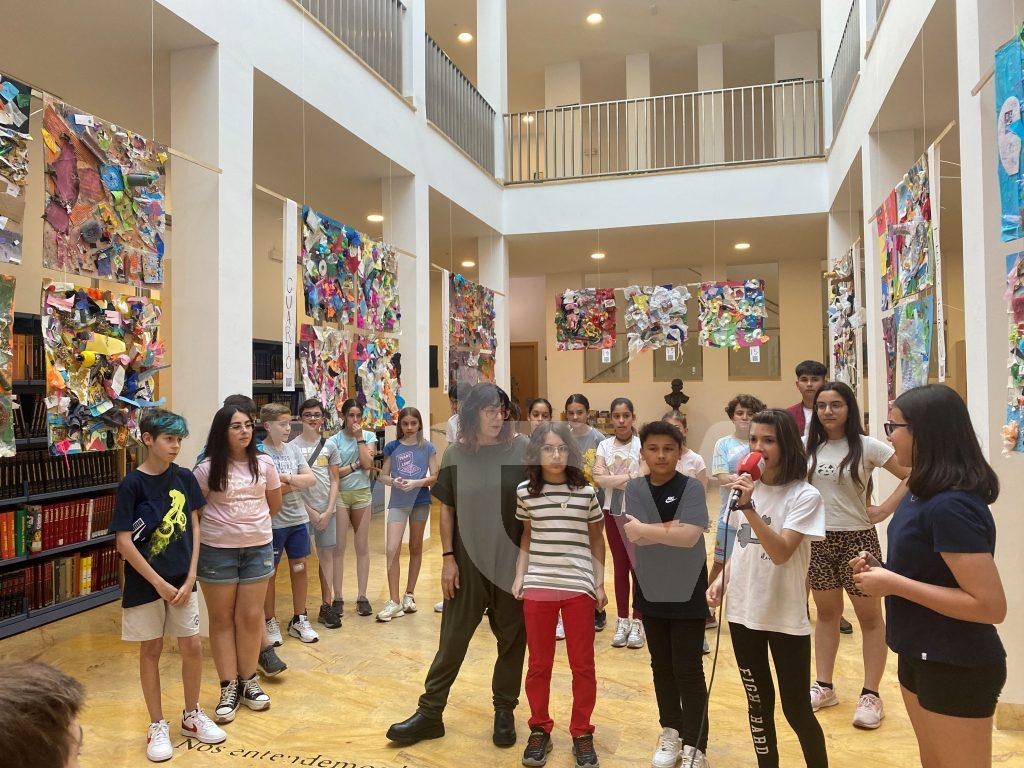 La maestra del plástica del centro, Mamen Moruno y el director del colegio, Fernando Hidalgo, presentaban la muestra, y tras la inauguración los alumnos presentes participaron en distintos talleres sobre el reciclaje, donde los niños explicaban el trabajo realizado.