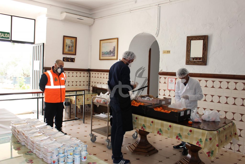Fernando Martín apunta que “desde que se inició esta nueva situación la cifra de atendidos se ha duplicado y no cesa de aumentarse por días, atendiéndose actualmente a unas 60 personas”. El reparto de alimentos para la jornada se realiza a mediodía en unas tarteras compradas para este reparto , en el que se incluye alimentos para el almuerzo y la cena , para ser consumidos en sus hogares, algunos de ellos, personas transeúntes sin hogar. En el reparto de alimentos se establecen distancias preventivas para la recogida , de cara a evitar contagios. Del mismo modo, todo el voluntariado está provisto de guantes y mascarillas durante su tiempo de trabajo.