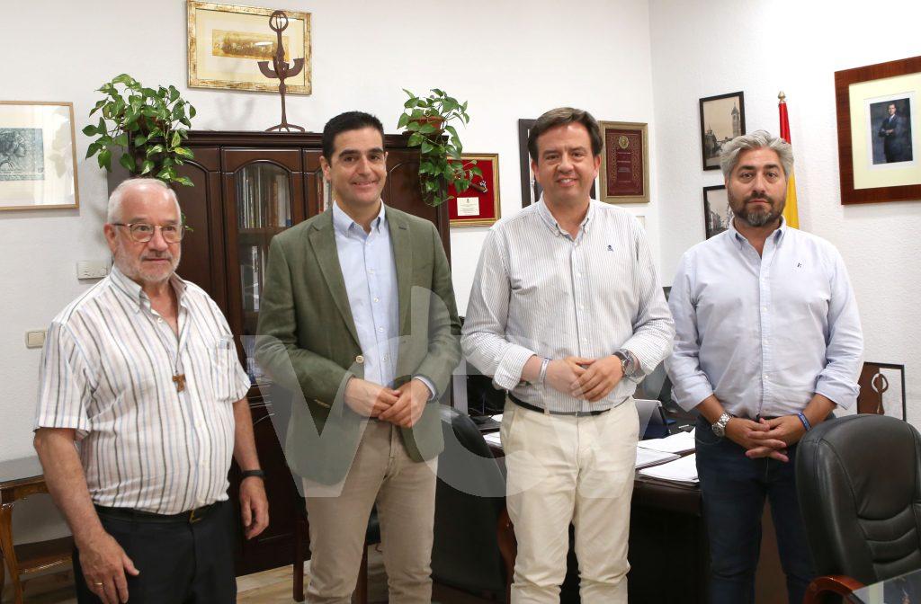 El alcalde lucentino, Aurelio Fernández, acompañado por el concejal de Turismo, Francisco Barbancho, el guardián del convento, el padre Antonio Herrera, y el presidente de la fundación en la que se integra Lucena, el alcalde de Alcalá la Real, Marino Aguilera, han suscrito este mediodía el nuevo acuerdo de colaboración que se pone en marcha con un periodo de vigencia de un año, con posibilidad de prorrogarse durante tres anualidades más.