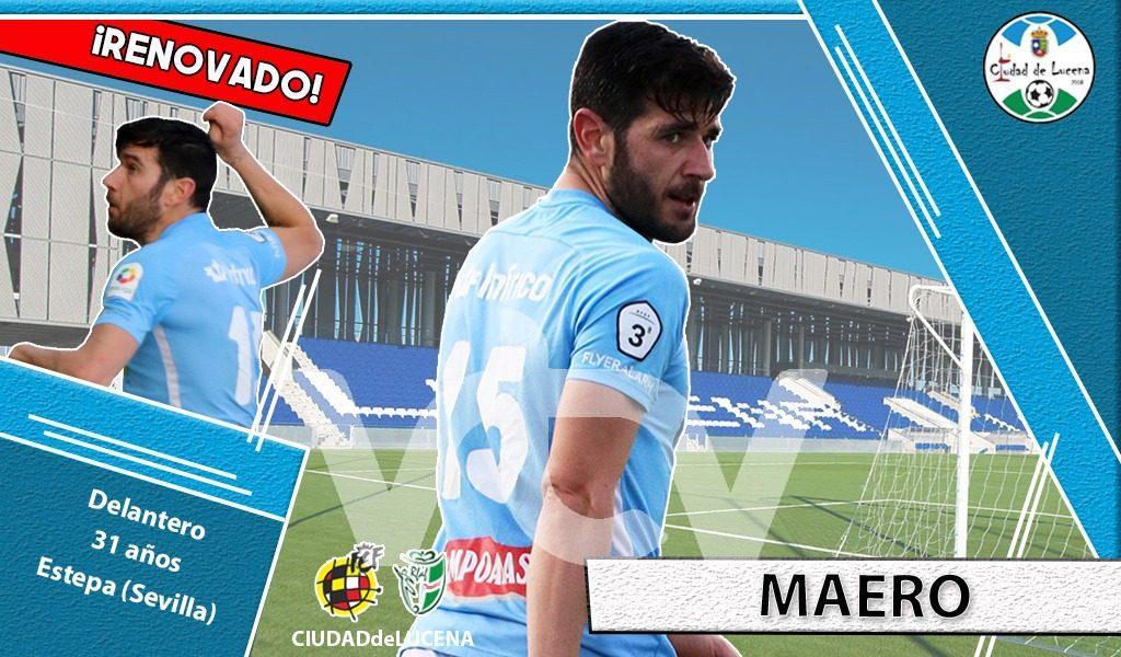 Maero le da el sí al CD Ciudad de Lucena tras su buen trabajo realizado en esta última parte de la temporada. Javier José Borrego González, más conocido como Maero, es un delantero que tiene entre ceja y ceja el gol. Maero, se ha criado en la cantera del Betis y tiene en su curriculum una decena de goles en todas las categorías. Maero es un delantero con un gran físico que amenaza con su sólo presencia el área rival. Luchador, ganador y espíritu competitivo, tiene el gol como la llave maestra de su fútbol.