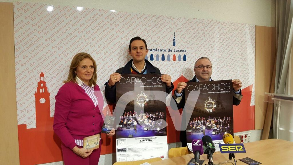 El concejal de Cultura, Manuel Lara, y la presidenta de la AECC en Lucena, Araceli Chicano, han presentado el concierto junto a Manuel Ramírez, representante del grupo, como una de las actividades que se desarrolla bajo el programa ‘Lucena City of music, Harmony for Tolerance’. Lara agradeció la visita a Lucena de Capachos y definió el concierto como “un espectáculo creado en nuestra provincia que viene a consolidar nuestra apuesta por la cultura musical”.