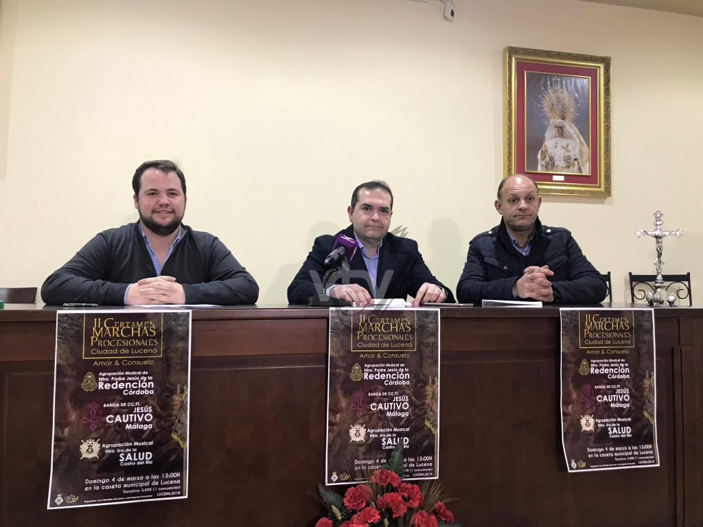 Las Cofradías del Amor y del Sagrado Encuentro organizan el II Certamen de Marchas Procesionales “Amor y Consuelo”, que se celebrará el próximo domingo 4 de marzo a partir de la 1 de la tarde en la Sala Gran Lucena, debido a la previsión de lluvia para esa jornada.