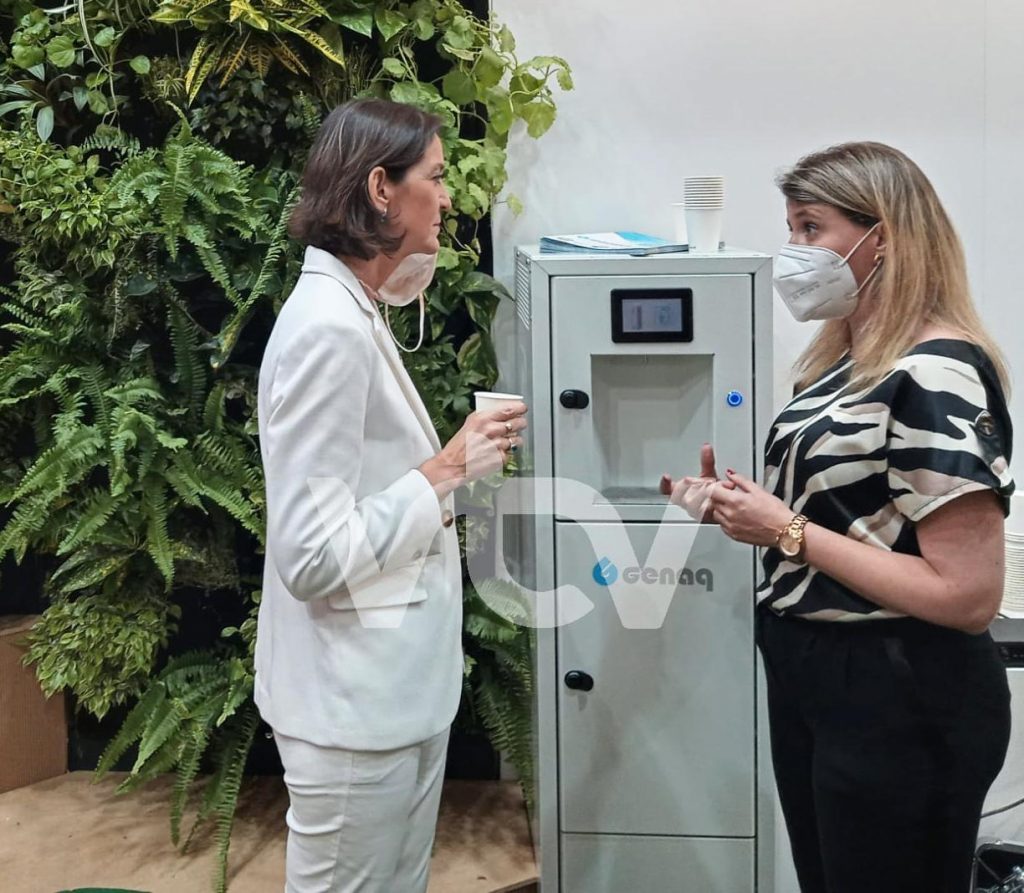 La ministra de Industria, Comercio y Turismo del Gobierno de España, Reyes Maroto, se interesó la pasada semana por la tecnología de generación atmosférica de agua de GENAQ durante la celebración del Mobile World Congress que tuvo lugar en Barcelona.