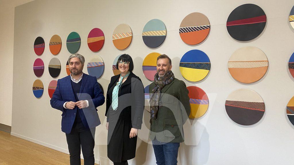 El comisario de la exposición, Antonio Sánchez, destacaba la importancia de los pueblos como lugares para el desarrollo de la cultura. Pepa Cano, explicó nos muestra dos series, una con corbatas recicladas y la otra con cuero.