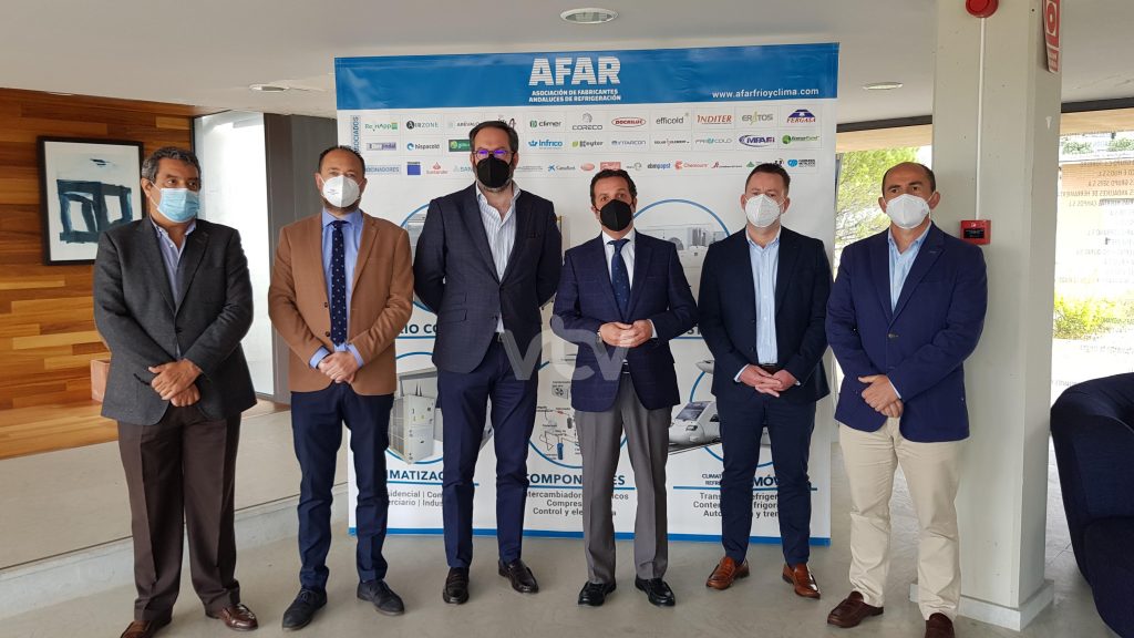 El presidente del Partido Popular de Córdoba, Adolfo Molina y el portavoz de Economía, Conocimiento, Empresas y Universidad del PP-A Ramón Herrera han mantenido una reunión con la Asociación de Fabricantes Andaluces de Refrigeración (AFAR) en la sede de este colectivo. Herrera anunciaba que llevarán al Parlamento Andaluz la iniciativa para la creación de un cluster del sector del frío, demandado por AFAR, así como la cesión de las instalaciones del Centro Tecnológico a esta entidad.