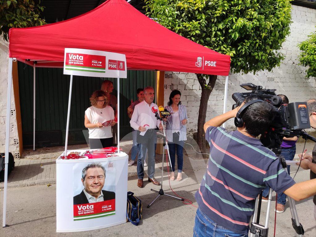 En un acto electoral celebrado en el mercadillo de Lucena, Juan Pérez, secretario general de los socialistas lucentinos y su homologa en Córdoba, Rafaela Crespín, han defendido las siglas de su partido y han atacado a PP y a Vox.