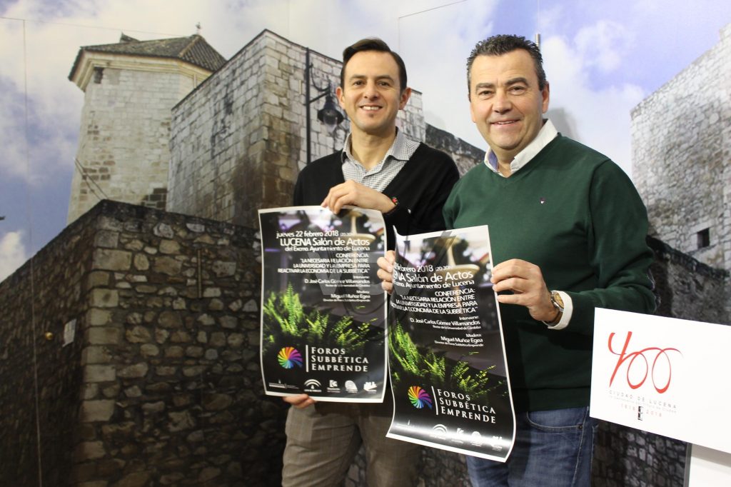 Los Foros Subbética Emprende, organizados por el Ayuntamiento de Lucena a través de la Delegación de Innovación y Desarrollo Local, retoman su actividad en este año 2018 con una jornada protagonizada por José Carlos Gómez Villamandos, rector de la Universidad de Córdoba (UCO), y la conferencia titulada ‘La necesaria relación entre la universidad y la empresa para reactivar la economía de la Subbética’.