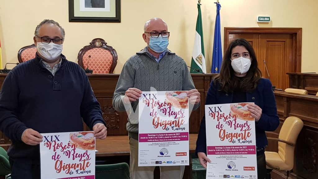 El XIX Roscón de Reyes Gigante de Lucena se celebrará a pesar de la pandemia. La delegación de Turismo del Ayuntamiento lucentino ha organizado una nueva edición de este dulce gigante, cumpliendo todas las medidas de seguridad estipuladas. En esta ocasión el beneficio recaudado irá destinado a Manos Unidas, único colectivo que ha solicitado participar este año en la organización y distribución del mismo. Se ubicarán dos sedes: en el Castillo del Moral y la Casa Palacio de Santa Ana, así como horarios de mañana y tarde; de 10 a 12 del mediodía y de 4 a 7, en jornada vespertina. Los tickets que se deberán de adquirir en los días previos al evento, contarán con una hora y un lugar fijado que se deben de respetar en el momento de recoger el suculento dulce. Lo explicaba la concejal delegada de Turismo, Teresa Alonso.