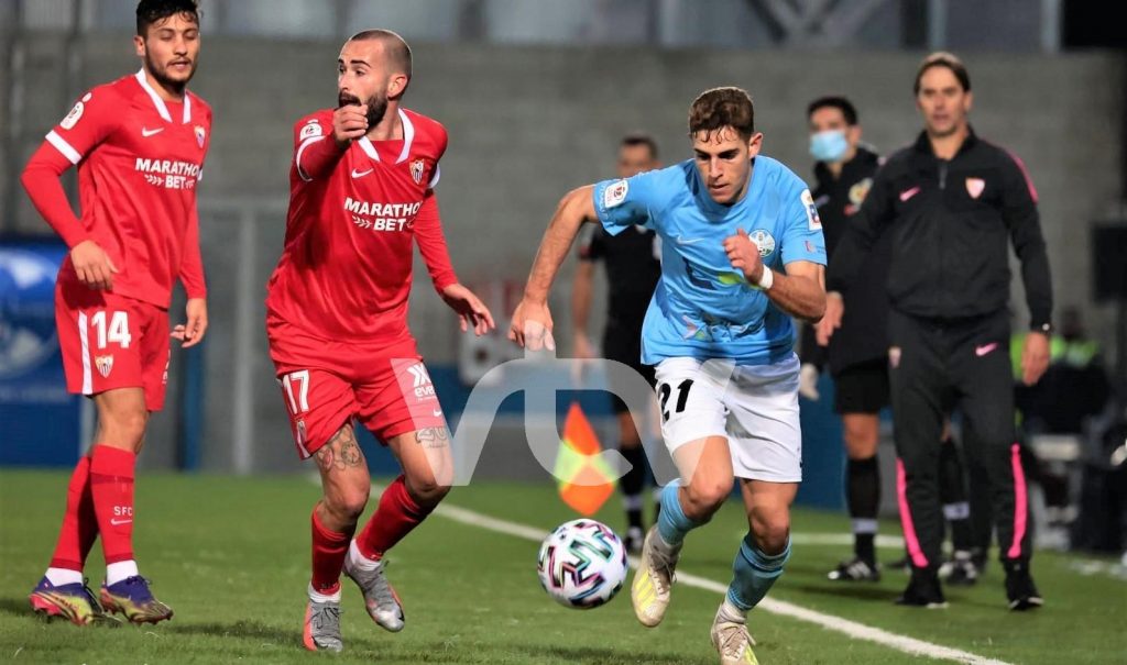 El equipo de la capital hispalense resolvió la eliminatoria en los primeros 45 minutos, ya que al descanso se marchó con una ventaja de tres goles y la sensación de dominio absoluto de la situación. Tras el gol de Óscar, el conjunto sevillista amplió su renta con un segundo tanto, en el minuto 14, obra del delantero holandés De Jong. Con la eliminatoria encarrilada, el Sevilla no bajó el pie del acelerador y tuvo más llegadas en el área del Ciudad de Lucena, destacando a los 37 minutos un zapatazo de Idrissi al poste.