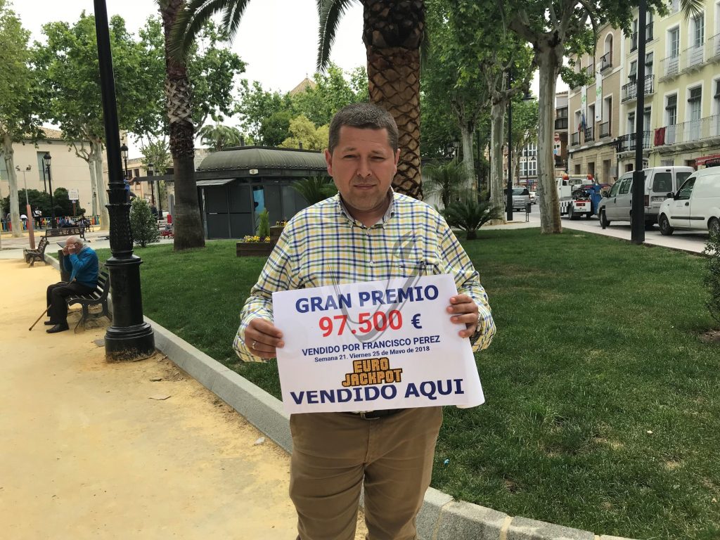 El Sorteo del Eurojackpot de la ONCE dejó el pasado viernes en Lucena un total de 97.570 euros. El vendedor fue Francisco Pérez Serrano, quien a través de un boleto electrónico llevó la suerte a un vecino de nuestra ciudad. La combinación ganadora estuvo integrada por los números–15, 31, 35, 40 y 46–. Se trata del único cupón premiado en España, aunque una decena de premios se distribuyeron también por el continente europeo. Pérez Serrano, mostraba su satisfacción por haber podido hacer un poco más feliz a un vecino de Lucena.