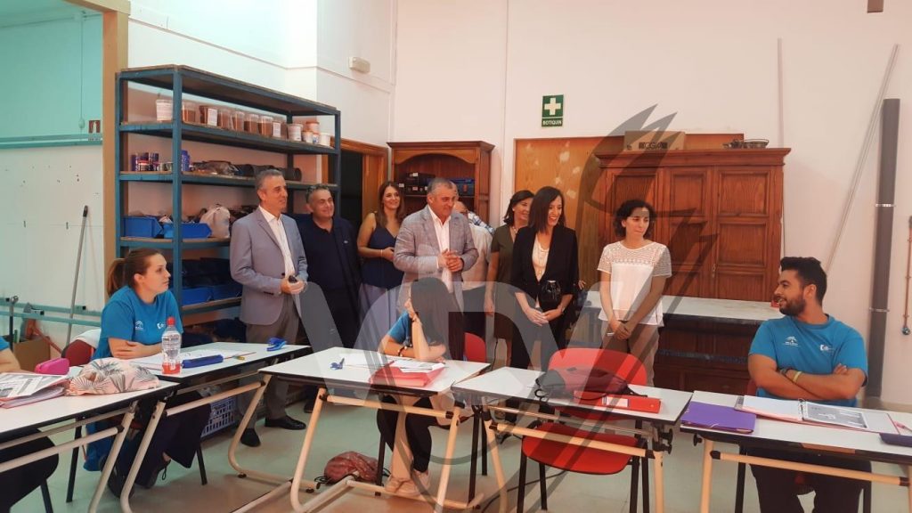 El consejero de Empleo, Empresa y Comercio, Javier Carnero, ha visitado hoy, junto al alcalde de Lucena, Juan Pérez, a los jóvenes que están participando en las Escuelas Taller de este municipio. Se trata de una iniciativa de formación profesional para el empleo de la Junta de Andalucía para impulsar en los municipios la inserción laboral en sectores estratégicos, y dirigida especialmente a menores de 25 años y con escasa formación.