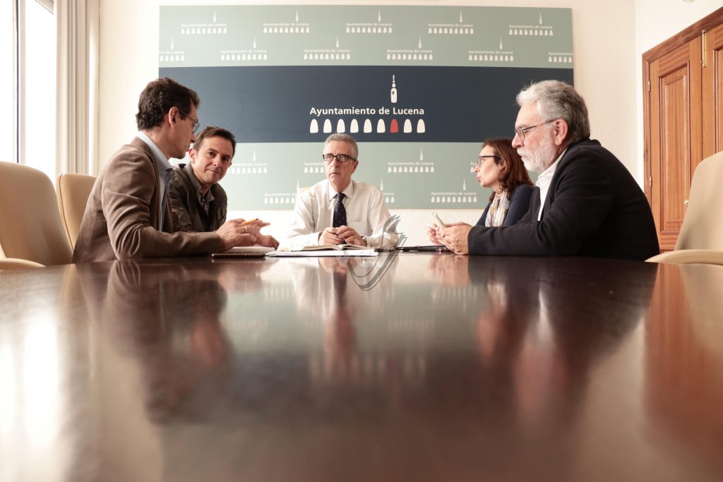 El alcalde de Lucena y presidente de la Mancomundiad de la Subbética, Juan Pérez, acompañado por el concejal de Turismo, Innovación y Desarrollo Local, Manuel Lara, se han reunido con el director de Proyectos TICs y Economía Digital de la Escuela de Organización Industrial, Emilio Cabanes y el mentor residente del Coworking de EOI en la localidad, Agustín Galiana, para avanzar en el estado de las relaciones que afronta Lucena y la Subbética en las que la Fundación dependiente del Ministerio de Economía, Industria y Competitividad será palanca de cambio para la formación y la empleabilidad.