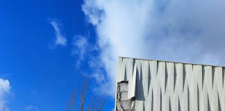 El temporal desprende una de las láminas exteriores del Auditorio Municipal