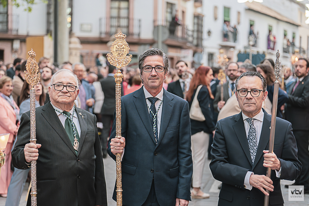 La noche se acercaba, el azul intenso de la hora mágica lo teñía todo, el verde la esperanza, como símbolo de este año jubilar de la Iglesia, se derramaba desde la Madre que arropaba a todo un pueblo que, vestido de gala, como corresponde a las grandes citas de los días grandes, acompañaba a una Madre que es Reina con corona de oro sobre sus sienes, la primera coronada de la provincia un dos de mayo de mil novecientos cuarenta y ocho.
